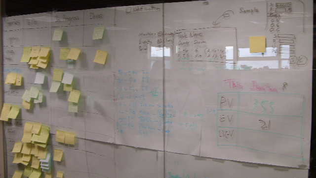 但是, 在一開始經理們還是不容易掌握狀況, 因為我們遇到的問題是講的東西和工作板(taskboard)上的東西對不起來. 當每個員工在講的時候, 可能所用詞和便利貼不一樣. 或是有些細節經理們不知道. 再加上看到有些便利貼項目沒有更新, 或是已經延遲了, 經理們會因此而很緊張.